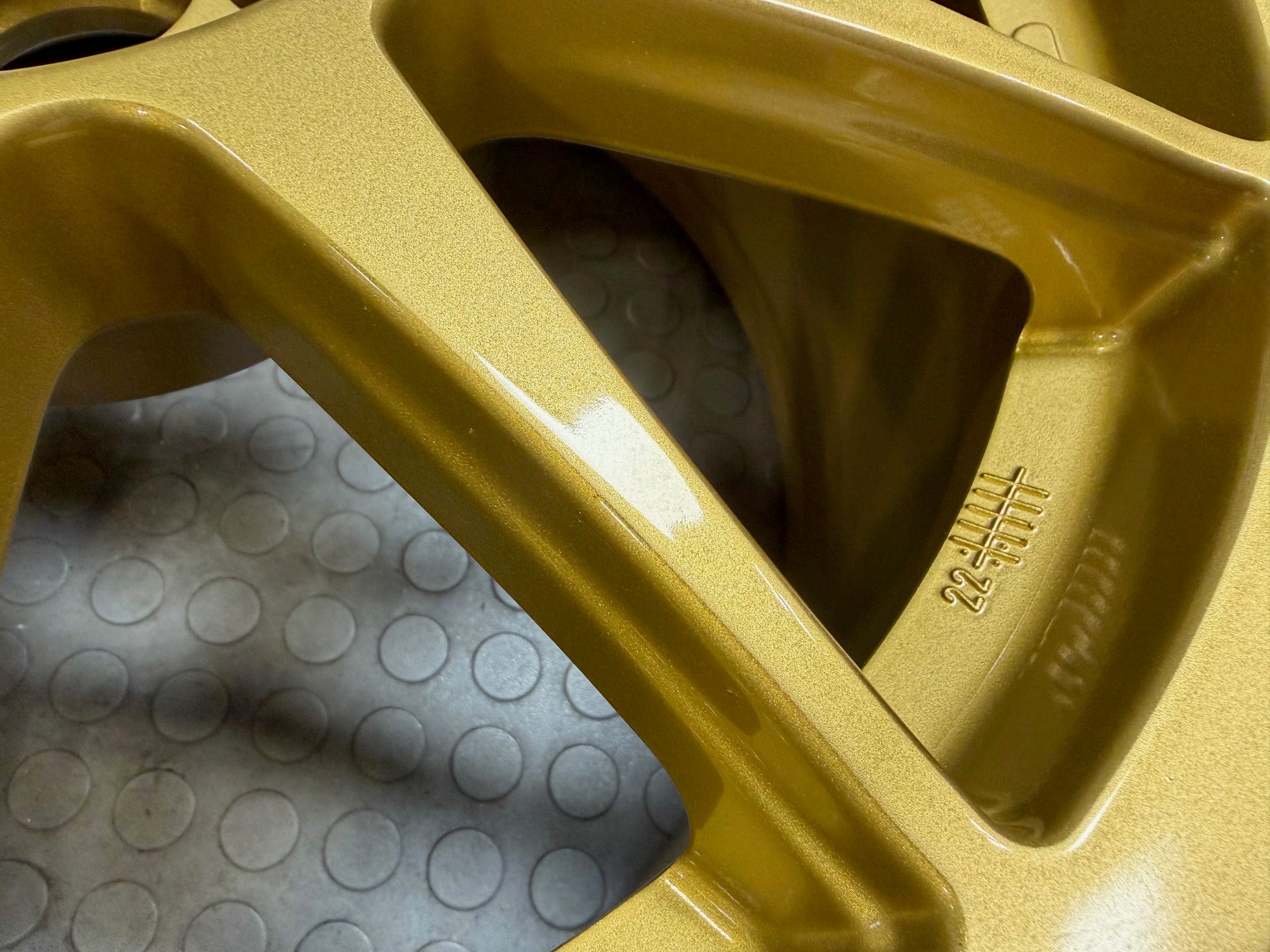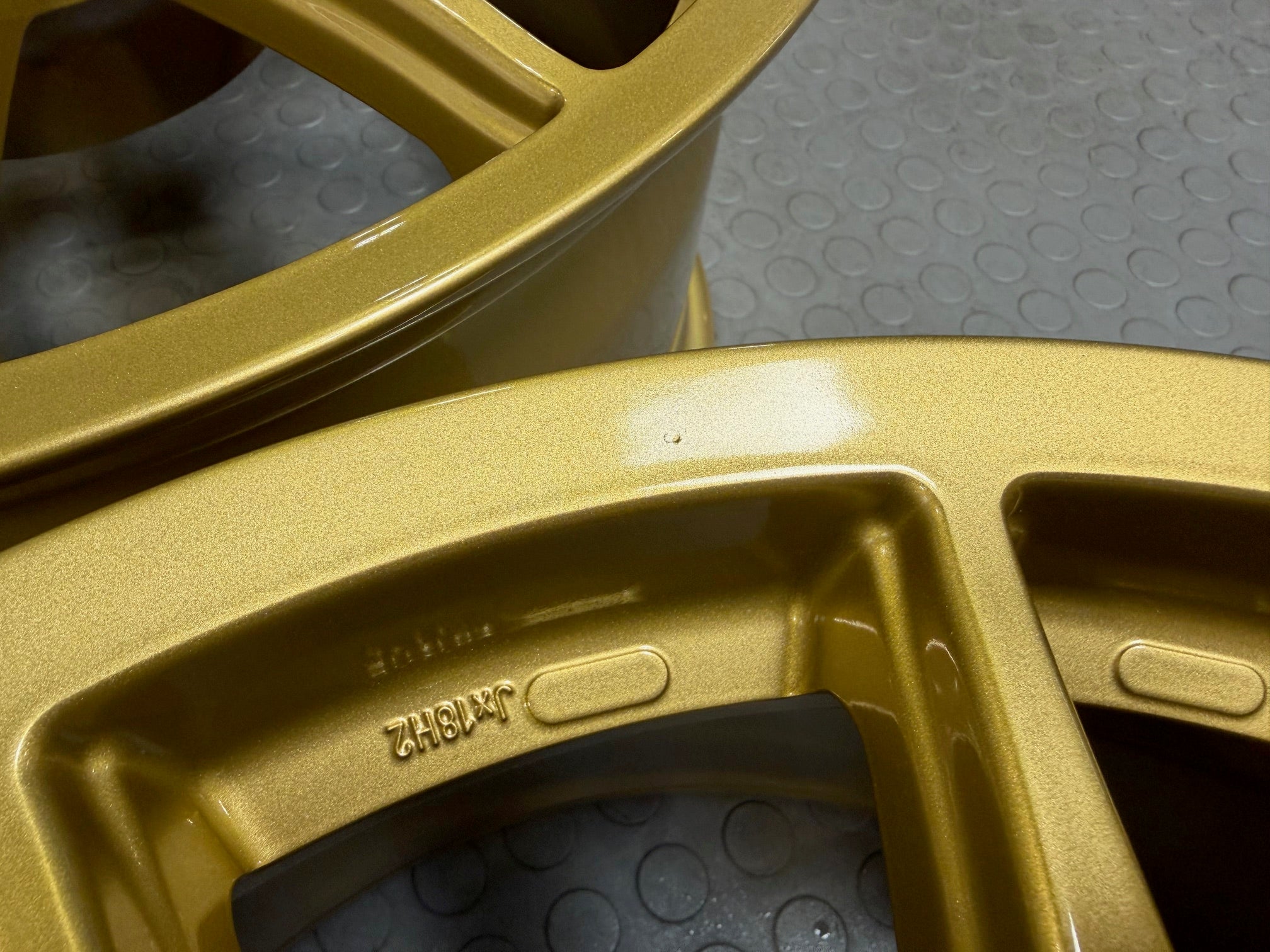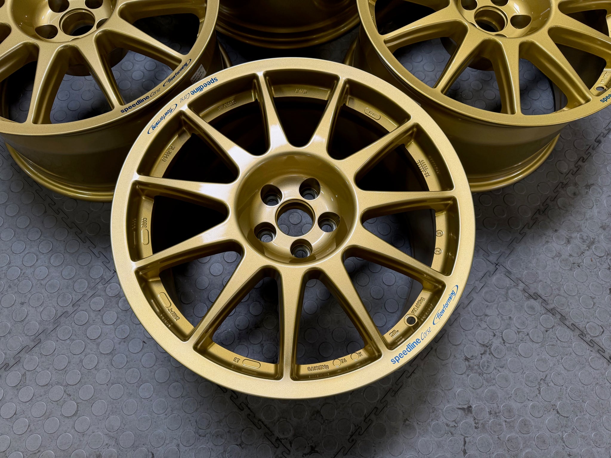 Complete set, 4 wheels of the Speedline Corse Type 2120 Turini Mann Engineering Spec Wheel. These wheels are brand new and have never been used. No tires have ever been mounted on them. The wheels have some paint blemishes, which is reflected in the price. The paint blemishes can be seen in the images.