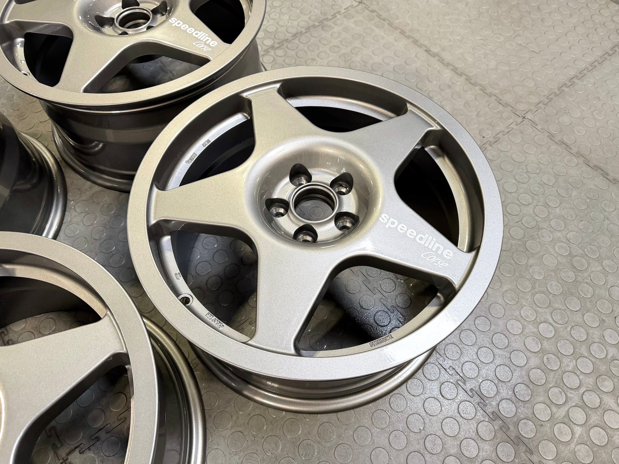 We have a set of the Speedline Corse Type 2110 in Anthracite for the 5x100 Subaru fitment. These wheels have some paint blemishes that you can see in some of the up close images. They have never had tires mounted on them.