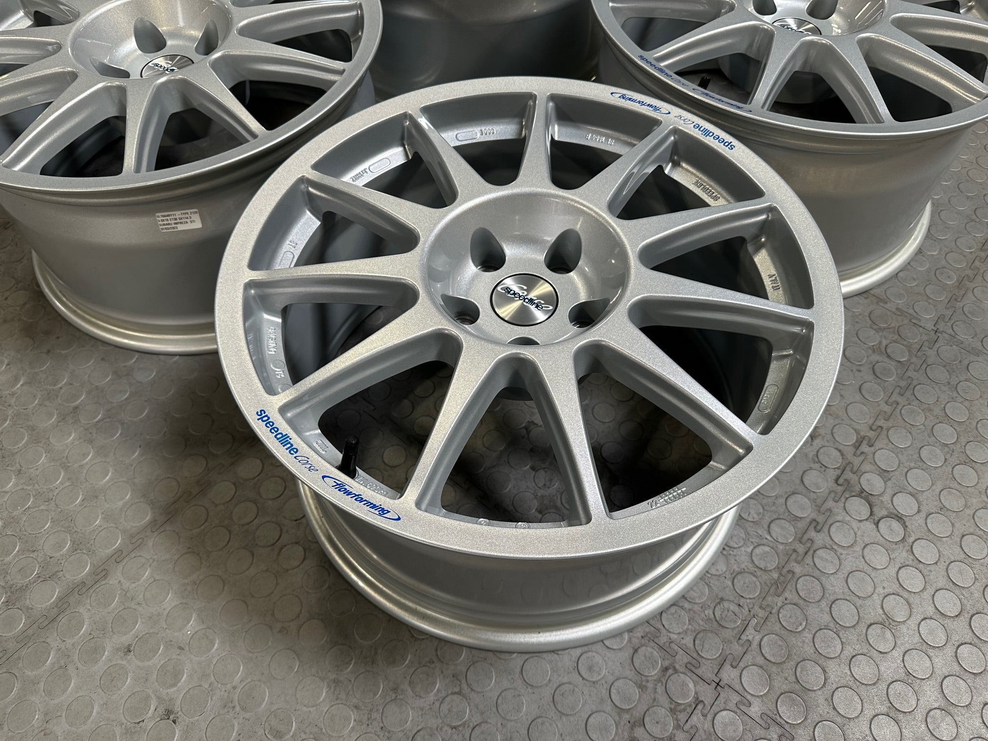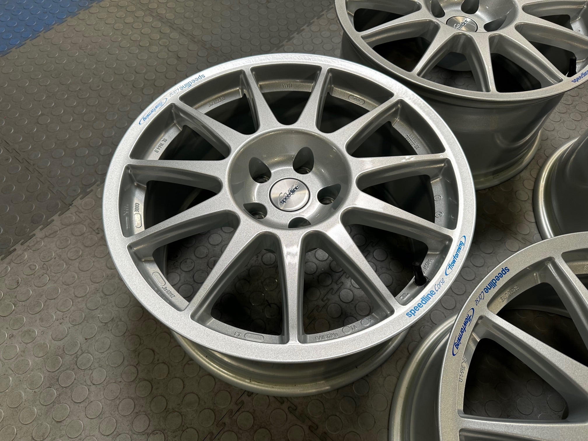 Complete set, 4 wheels of the Speedline Corse Type 2120 Turini Mann Engineering Spec Wheel. These are a demo set of wheels. Tires were mounted and installed for picture purposes only. They have not been driven on other than for picture purposes.