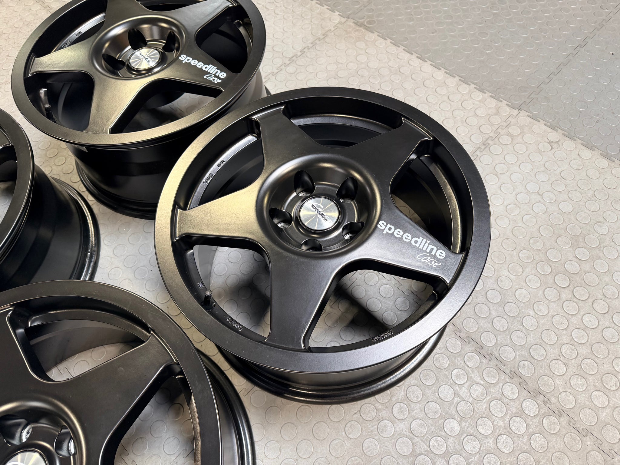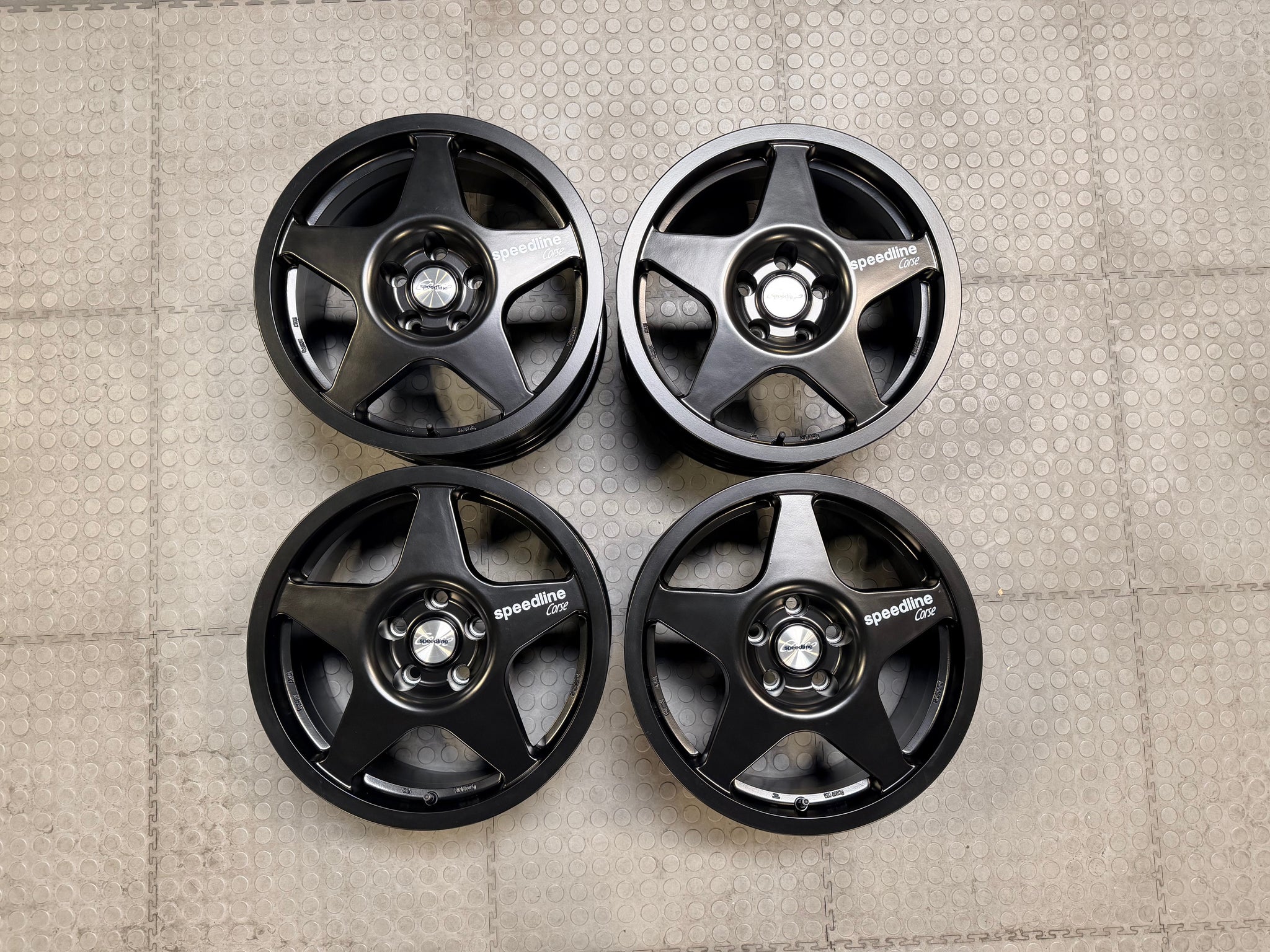 We have a demo set of the Speedline Corse Type 2110 in Matte Black for the GR Corolla fitment. These only had one set of tires mounted on them and used only for picture purposes.